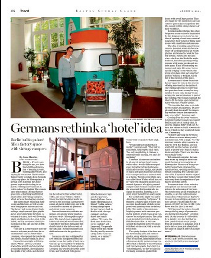Lorenzen and Vollmer found the factory space for rent, in the process of being renovated by the landlord. The original idea was to convert all the space into hotel rooms, but they decided to save some money by preserving the raw architecture in part of the building. The women then had the idea to fill the large, open industrial space with tiny portable cabins.